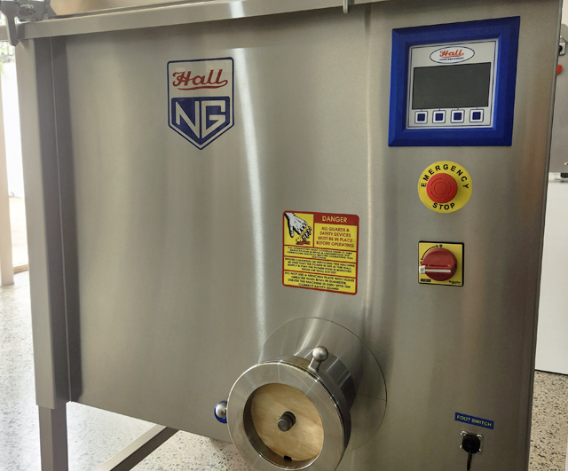 Cutting head. Redesigned with 60% higher throughput than previous Hall mincer mixers. Enterprise #42 cutting system as standard with E130 double-cut barrel as an option. The barrel can be removed for replacement, upgrade, or to allow easy movement of the machine through narrow doorways.