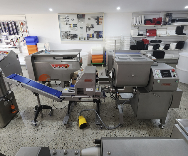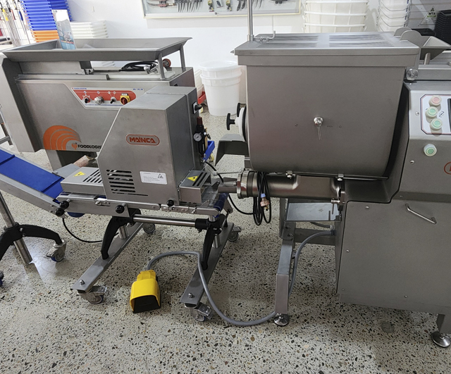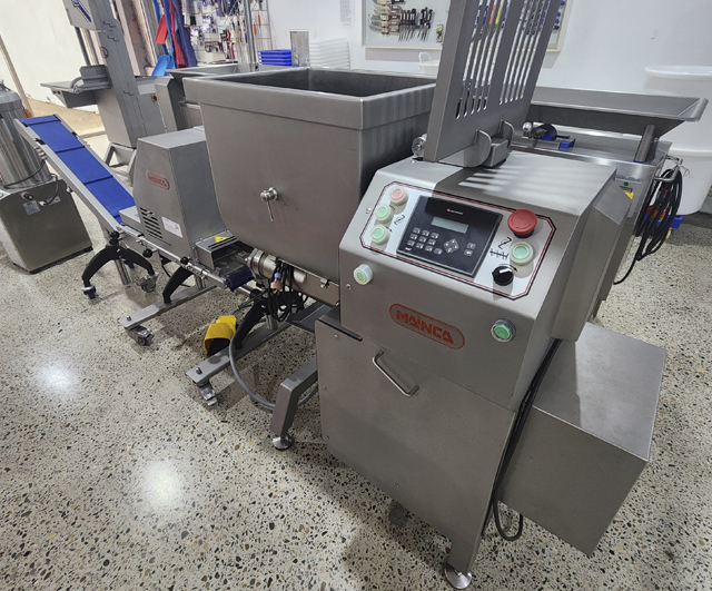 Requires three-phase power, 12.2 amps pulled from mixer-mincer.